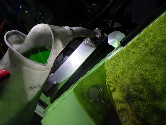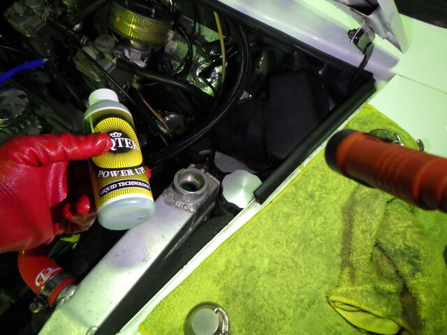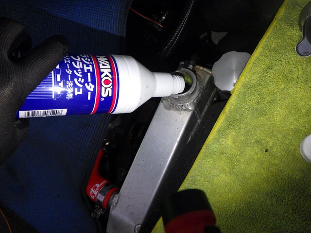 ラジエターフラッシュ入れてエンジン始動で洗浄開始