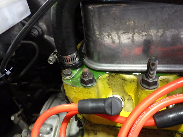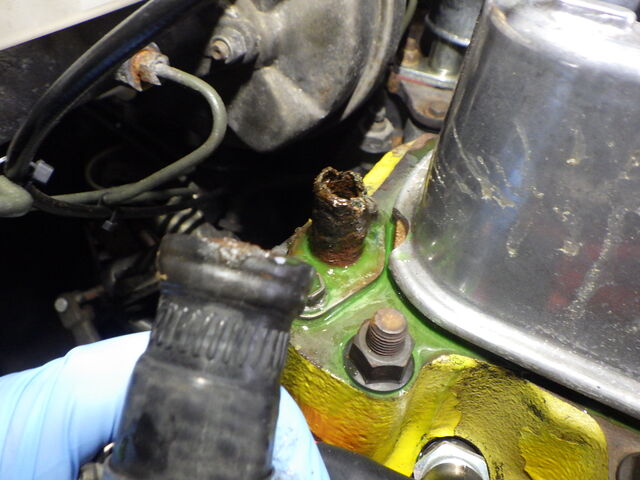 シリンダーブロック向かって左側のクーリングホースが接続される