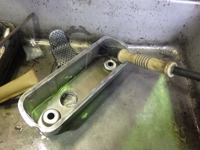 ロッカーカバーの古いガスケットを除去して洗浄します。