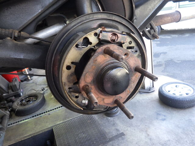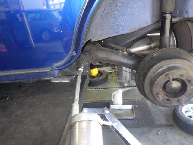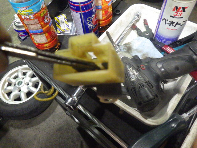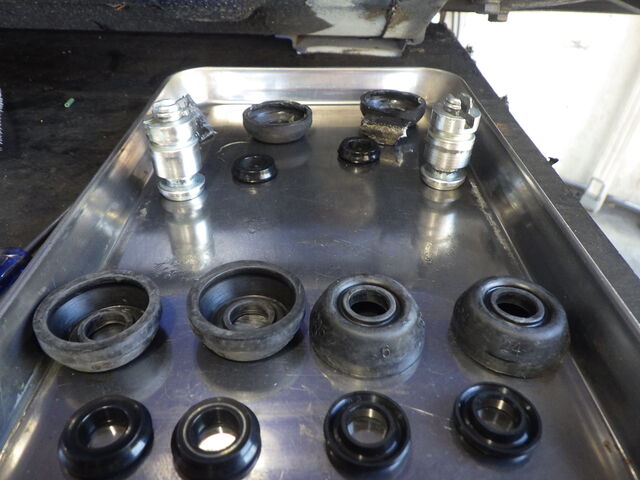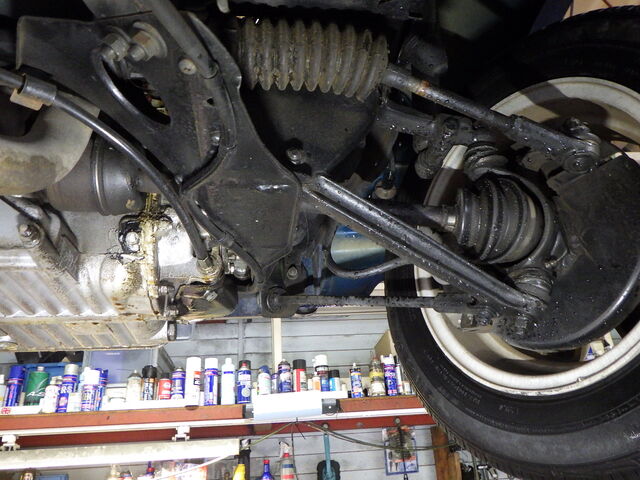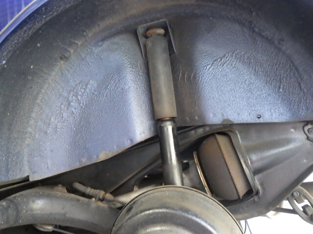 左のリアショックアブソーバー、オイル漏れが始まってます。