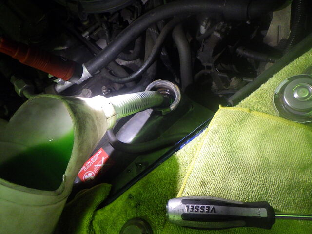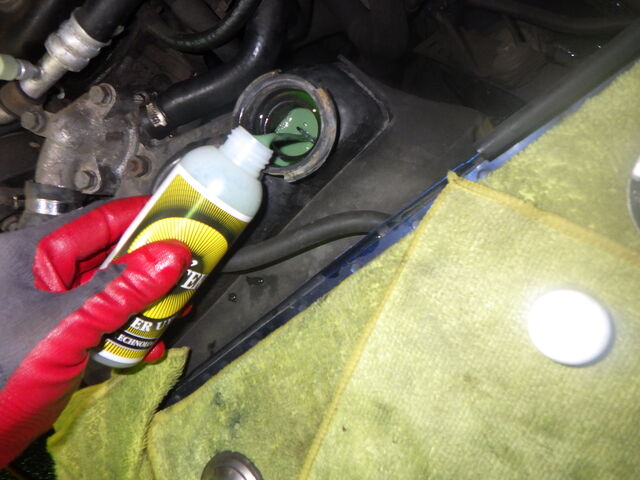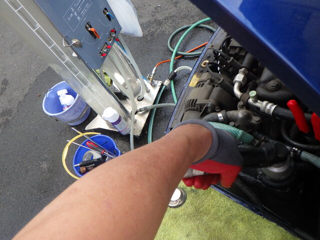 ラジエターフラッシュ入れてエンジン始動で洗浄開始