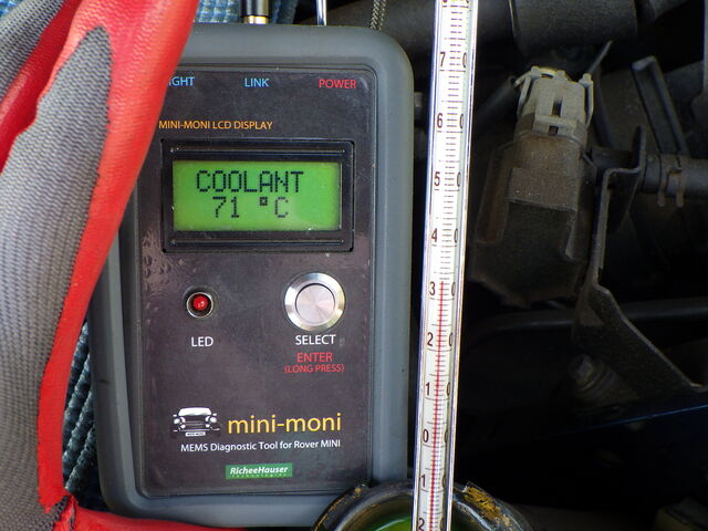 エンジン側の水温センサーは71℃ ラジエターに挿した温度計は33℃をキープしてます。