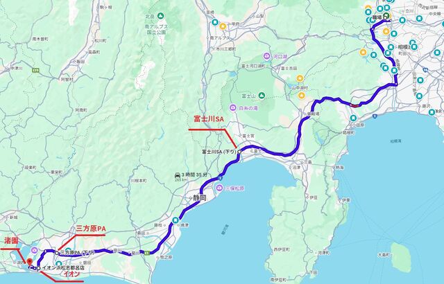浜松西IC手前の三方原PAにだいたい11時頃到着したい。