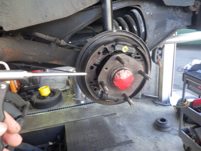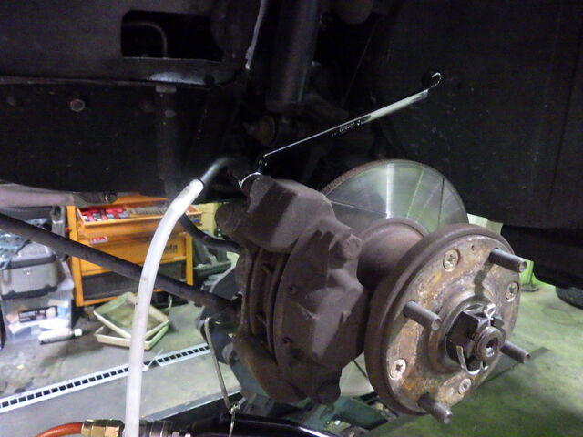 ブレーキパイプラインのエア抜きをします。