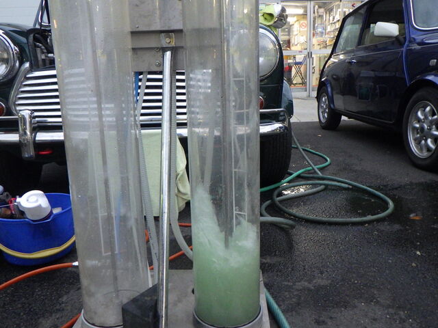 洗浄後の状態、一度には溶けないようです。走行後、温まった冷却水で