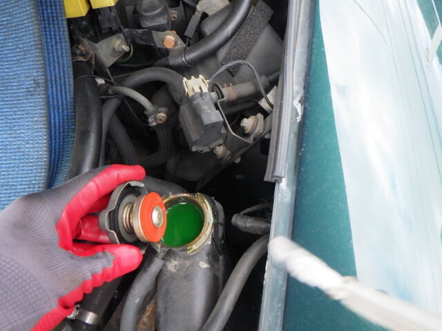 水量調節してラジエーターキャップを閉じ
