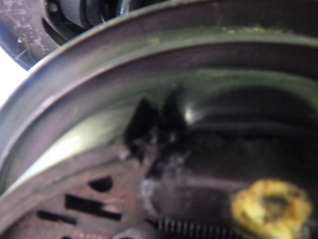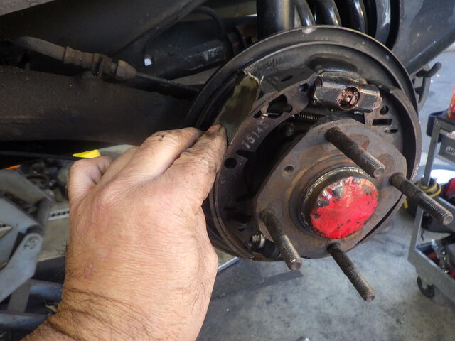 ブレーキシューは鳴き予防のため角を落として取り付けます。