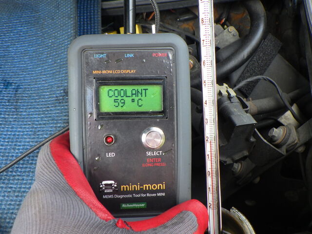 エンジン側の水温センサーは59℃ ラジエターに挿した温度計は21℃をキープしてます。