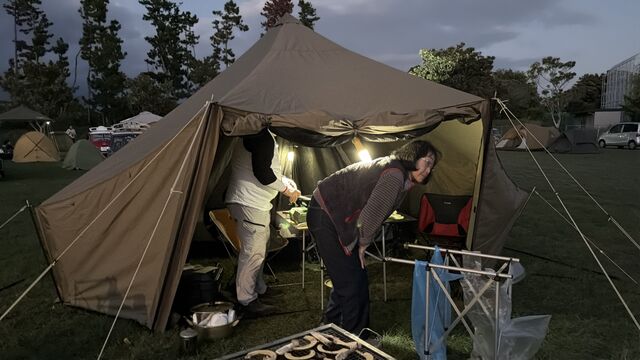 KNM様 日暮れてしまったご到着時刻と大きなテント、