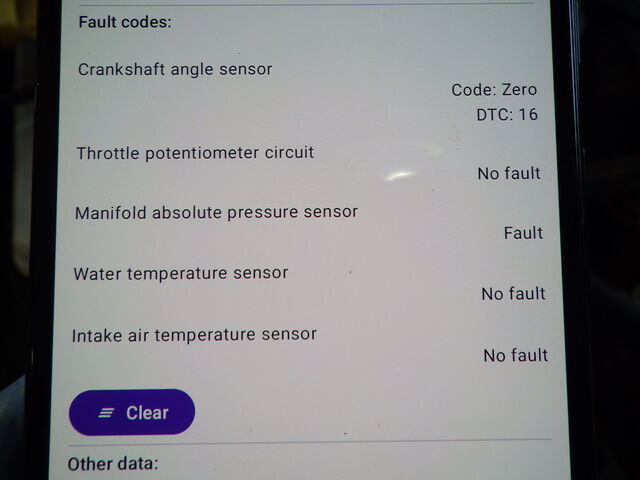 クランク角センサーとmapセンサーにフォルトありました。
