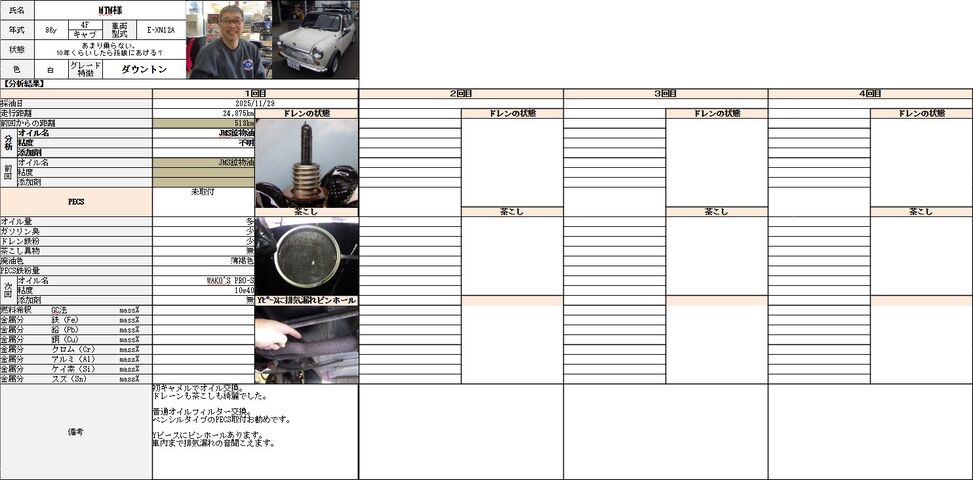 今回キャメルでは初のオイル交換でしたのでオイルカルテを作りました。