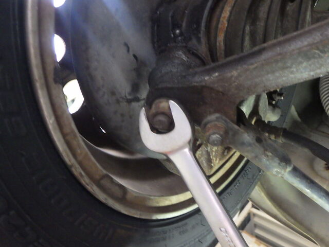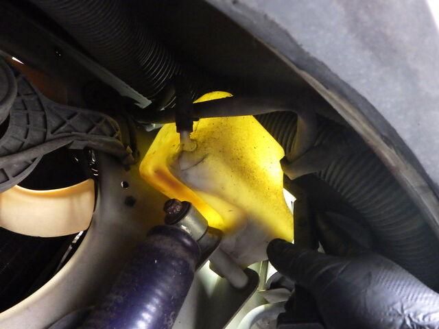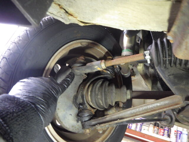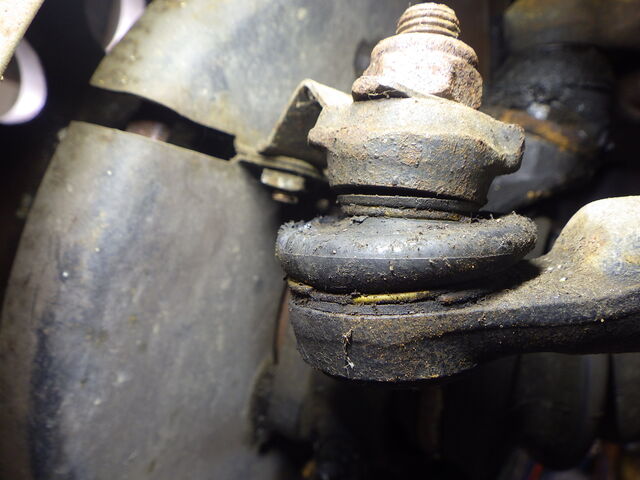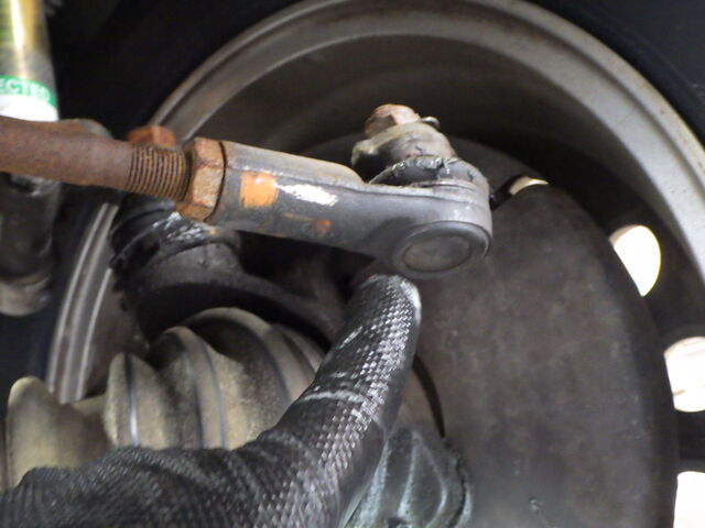 左のタイロッドエンドブーツが切れています。
