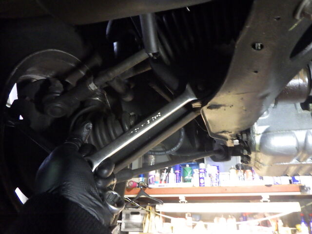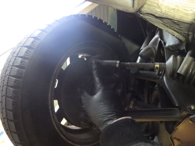 左のタイロッドエンドに小さなガタがあります。