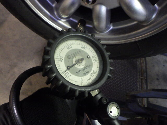 タイヤの空気圧はフロント240kpaリア220kpaに合わせておきました。