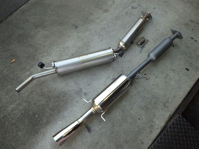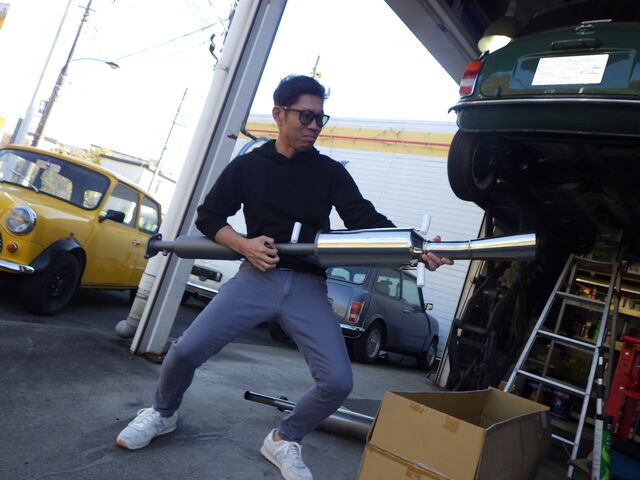 ヴァルタン純正タイプステンレスマフラーは養生して助手席へ。