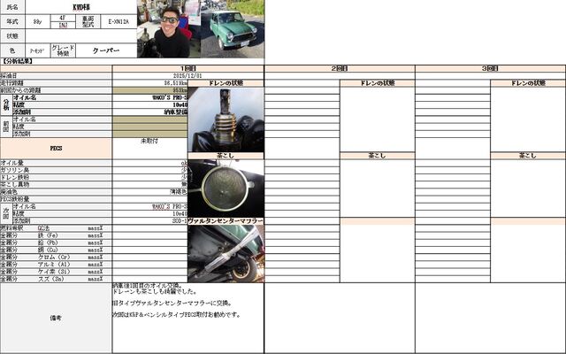 今回初のオイル交換でしたのでオイルカルテを作りました。