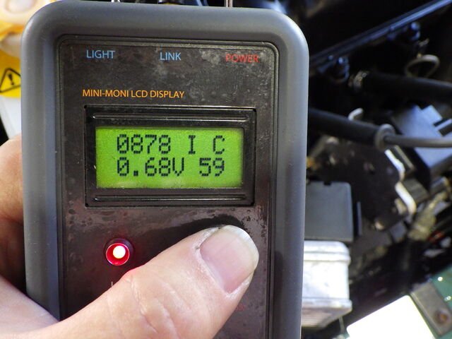 O2 SENSOR - O2センサーの電圧およびその状態を表示。アイドリング時は0.4V以下(リーン)~0.6V以上(リッチ)を常に上下しています。