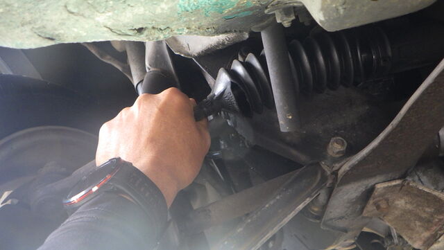 リフトアップして水漏れ箇所や足回りのチェックを行います