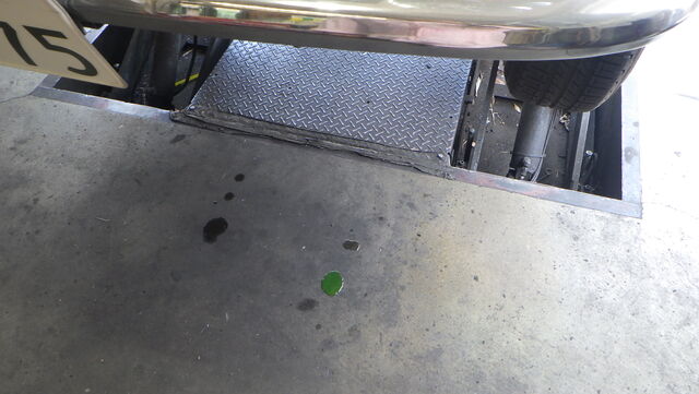 リフトの床に緑の液体が零れました・・やはり冷却水は漏れてますね
