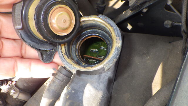 ラジエターキャップを開けるとパイプが見えてます。 水は少ないです