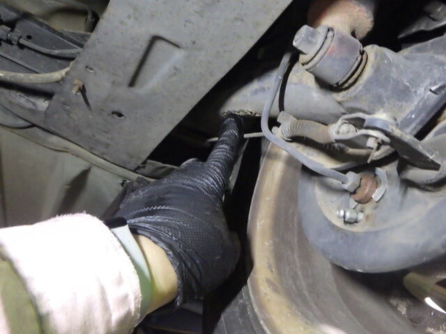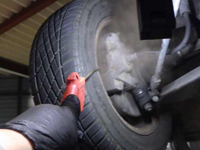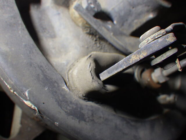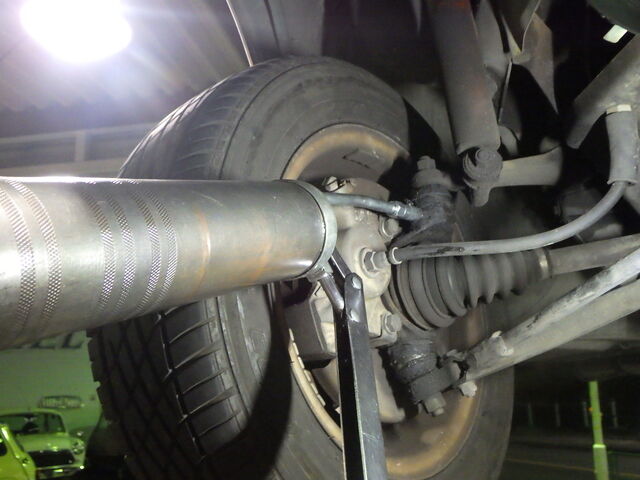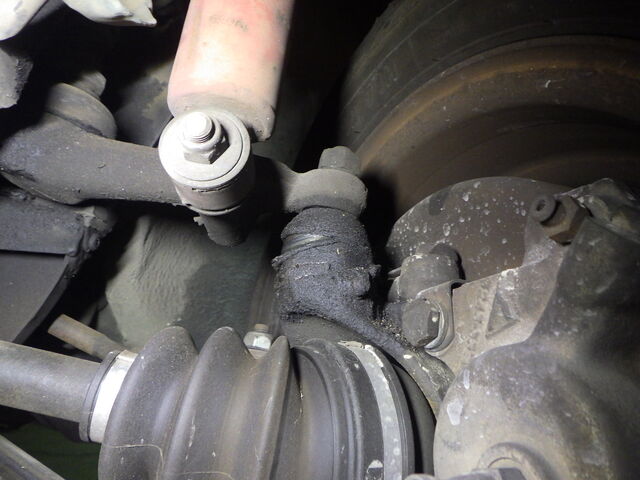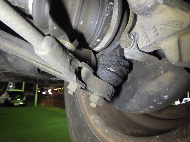 右のタイロッドエンドのブーツが切れています。