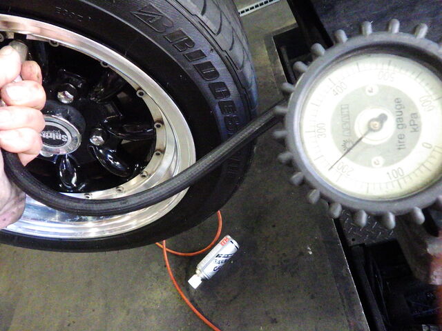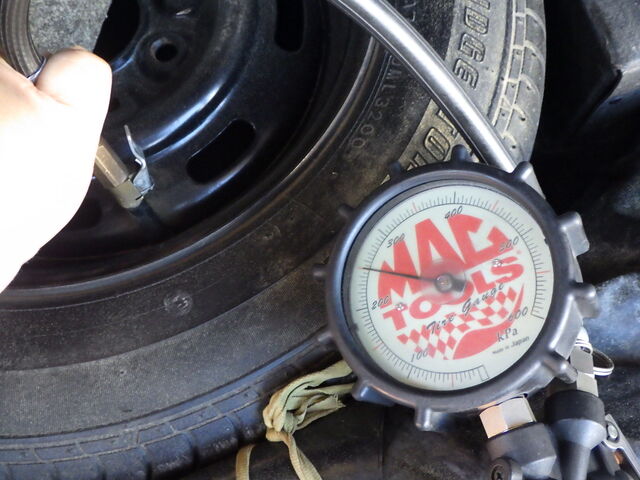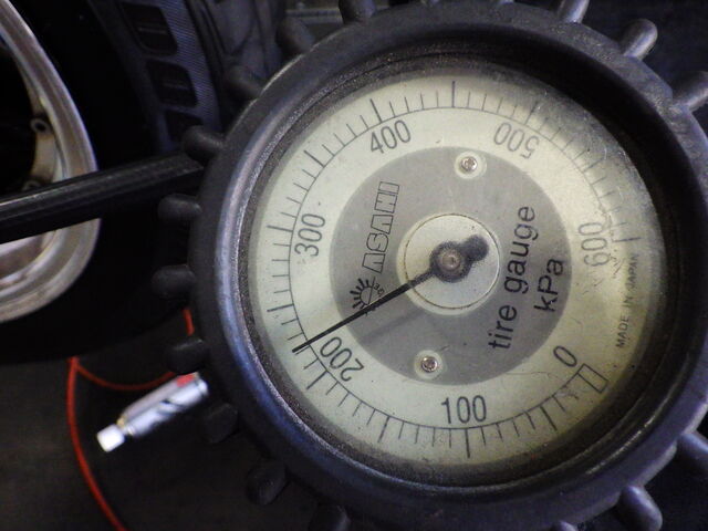 タイヤの空気圧は220kpaに調整しました。