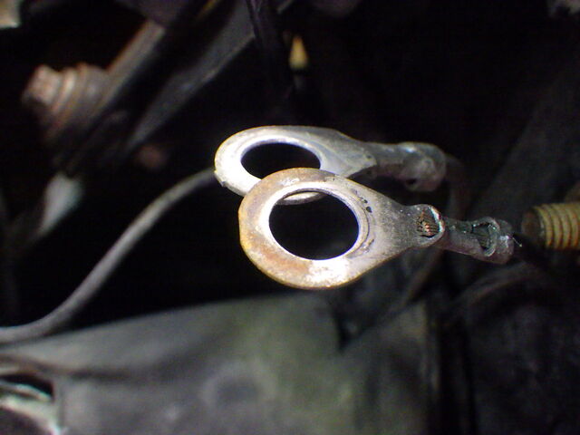 丸端子も錆びているので磨きます。