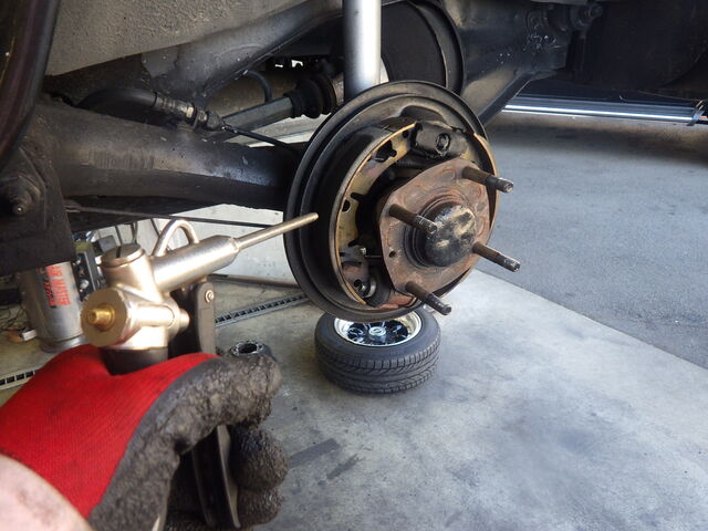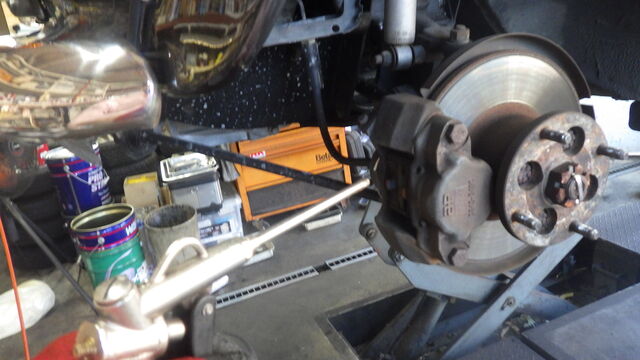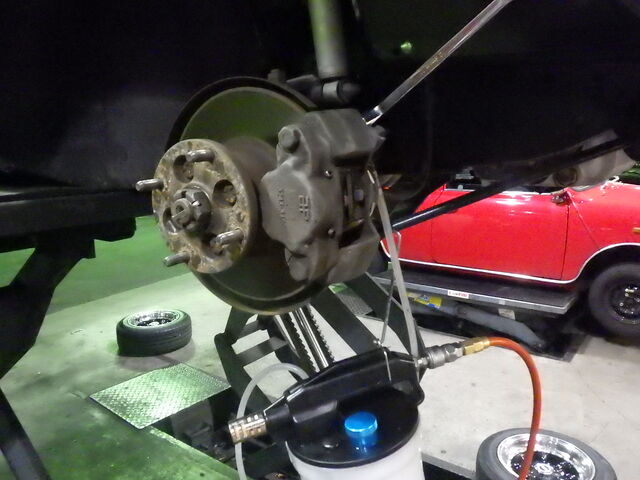 ブレーキパイプラインのエア抜きをします。