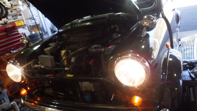 お車は ヘッドライトの光軸を調整して陸事へ