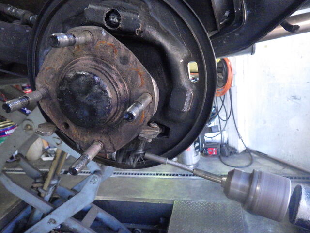 リフトアップして車検整備に入ります。
