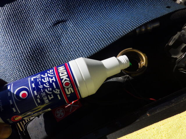 ラジエターフラッシュを入れてエンジン始動で洗浄開始