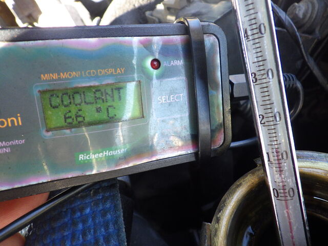 センサー側66℃でラジエター側の温度計は14℃なので