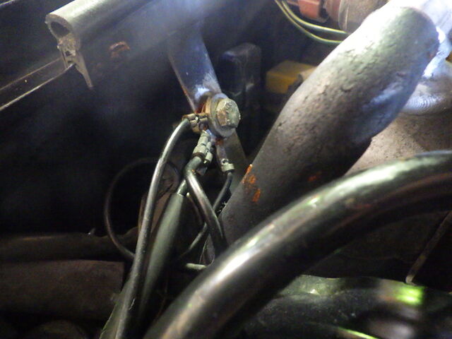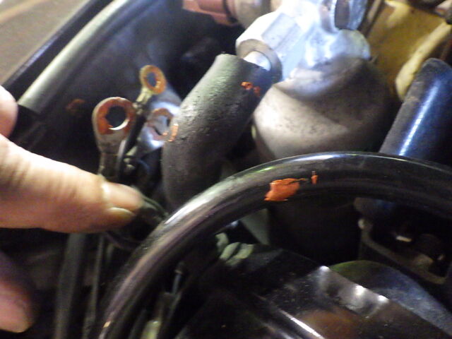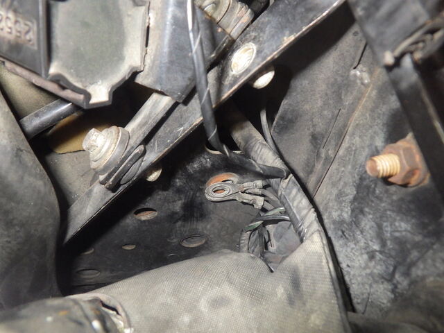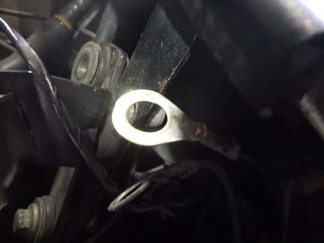 ヘッドライトのアースポイントが錆びているので磨きます。
