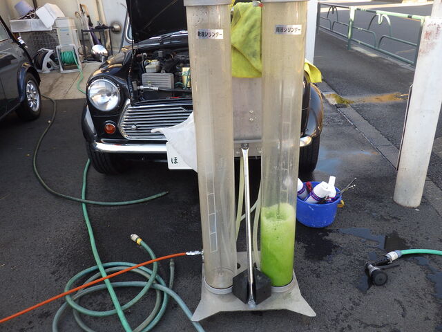 続いてヒーターコアを逆流ですすいでいきます
