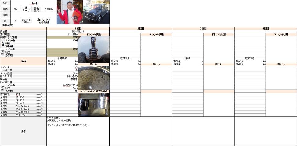 今回初のオイル交換でしたのでオイルカルテを作りました。