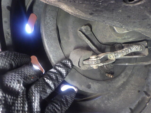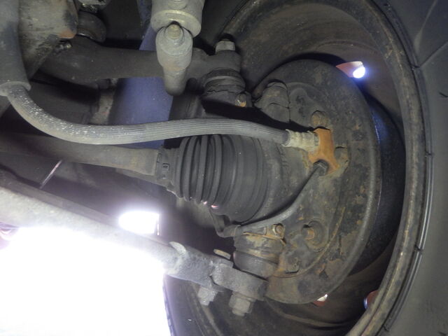 左前のナックルジョイントのソケットが破損しています。