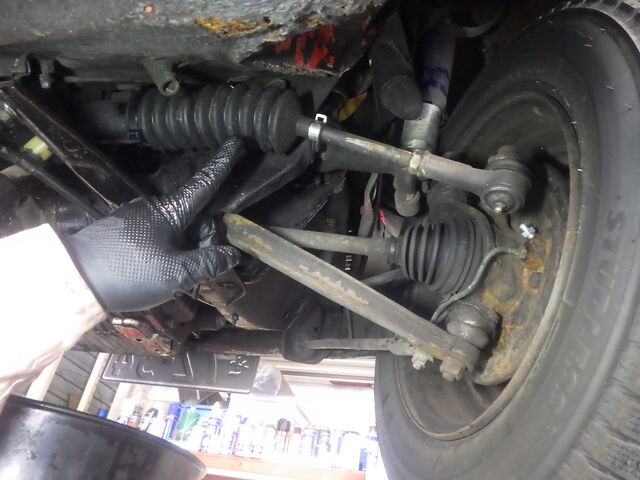 右のタイロッドにガタがあります。