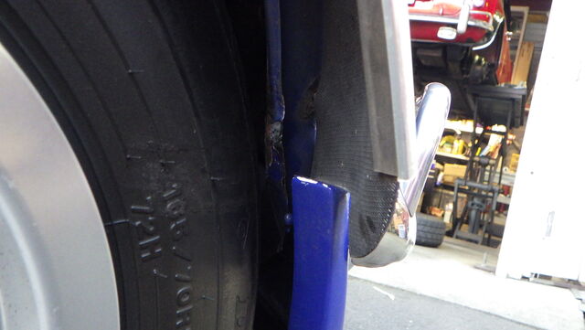 ボディ側が少し押されてフェンダーが変形したのが原因のようです。