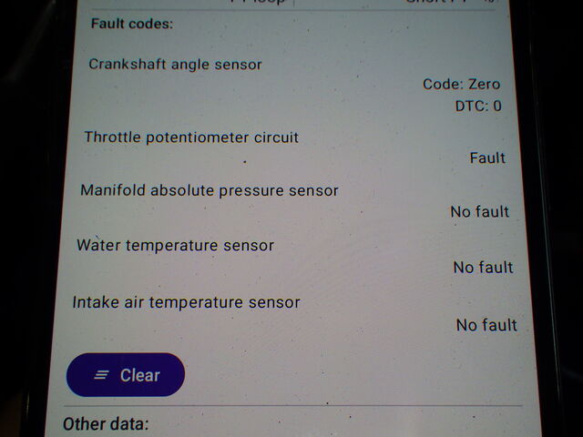 カジモニチェックはスロットルポジションセンサーにフォルトありました。