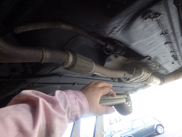 走行時フロア下から音がしていましたが断熱材が落ちてマフラーに接触していました。