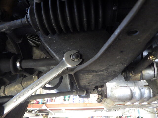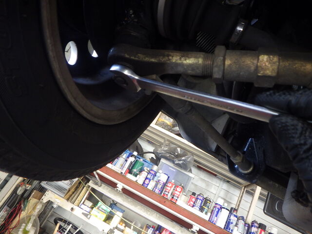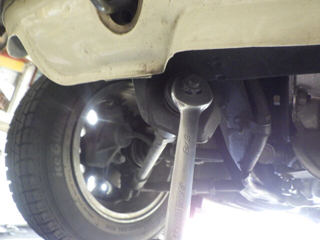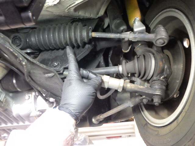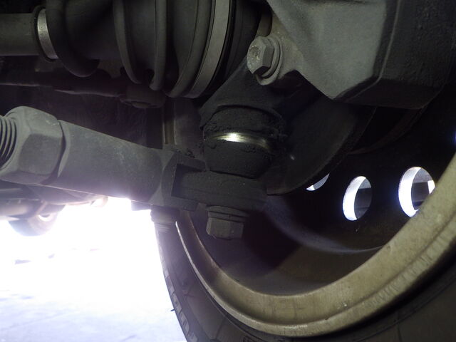 右のタイロッドに小さなガタあります。
