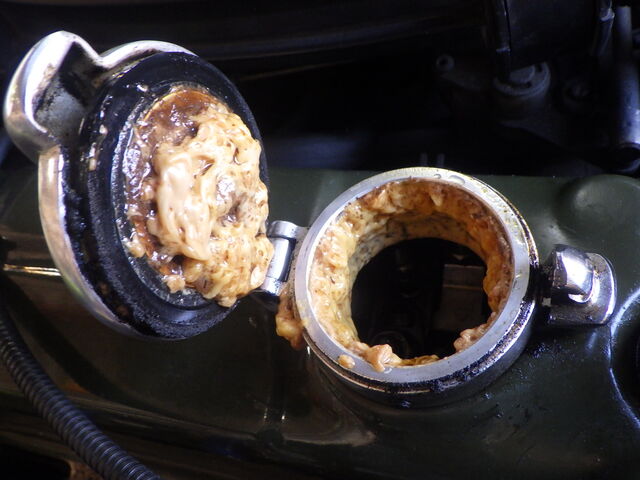 こういったフィラーキャップの白濁はエンジン内の水分とオイルが混ざり合う事で出来ます。