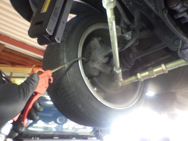 左のタイロッドエンドに小さなガタがありました。