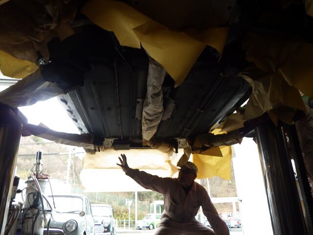 重めの整備をする側のピットではノックスドールアンダーコート施工中。