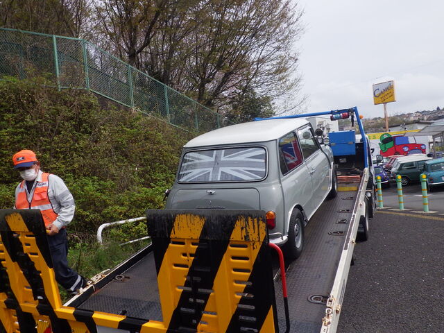 「ウインカーもハザードも点かなくなっちゃった」とJAF搬入です(´;ω;`)ウゥゥ